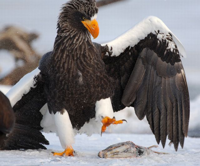 別の鳥と奪い合いをしてるようです。なにやら漁夫の利を狙うコソ泥もいますが…。