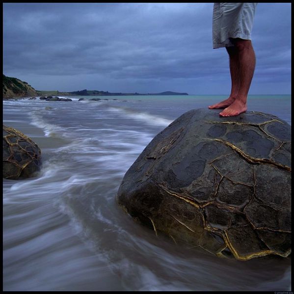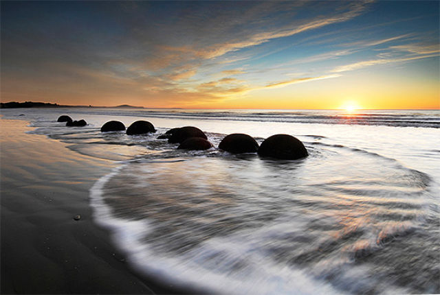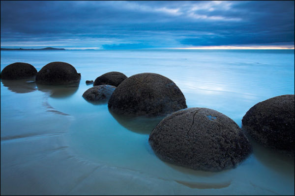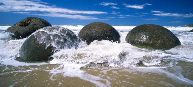 場所はニュージーランド南東部に位置するモエラキ海岸。