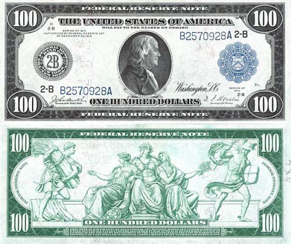 ちょっと古い洋画に登場する100ドル札だと、このデザインがおなじみですね。