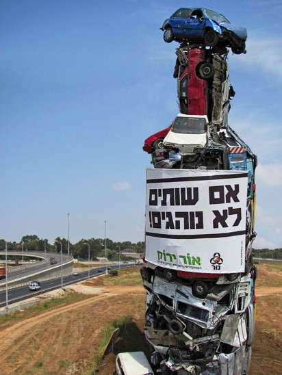 イスラエルで飲酒運転撲滅をアピールするため、実際に事故を起こした車を使ったインパクト絶大なオブジェクトが作られたそうです。