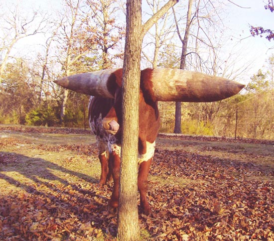 こちらは普通のWatusi。これでも十分大きな角ですがラーチの太さは別次元ですね。両端の長さは1.8m程になるそうです。