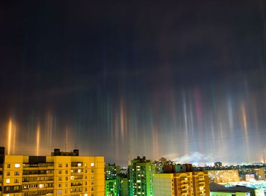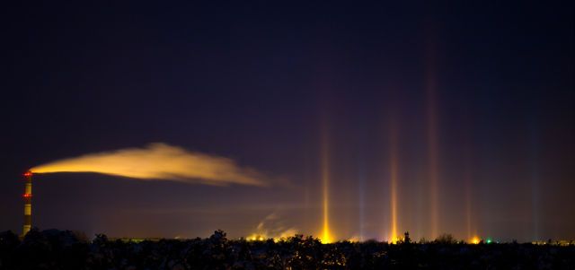 特殊な気象条件が生み出す「光柱(ライトピラー)」の幻想的な光芒