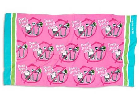 「酒気帯び運転するな」を英語で"Don't drink and drive"と言いますが、それをかけて、酒気帯びで電話をするな"Don't drink and dial"というアドバイスをしてくれるタオルです。