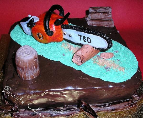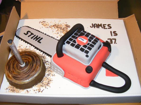チェーンソーをケーキにしてしまったもの。凝っていますが味の方はどうなのでしょうか。