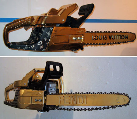 ブランド志向でも洋服はこだわらないと言う人もいると思います。そんなときはルイ・ヴィトン・チェーンソーに、フェンディ・チェーンソーをどうぞ。本物ではないと思いますが、ちょっと木を切るのがもったいないかも。