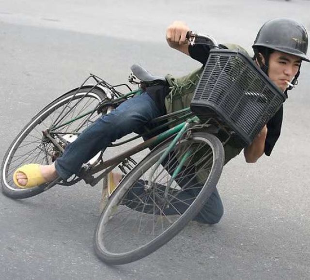 あこがれる気持ちはわかりますが、正しい乗り物と正しい乗り方があっての格好よさなんだなと、改めて実感できる写真でした。