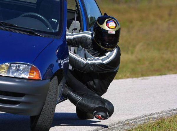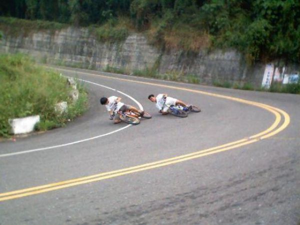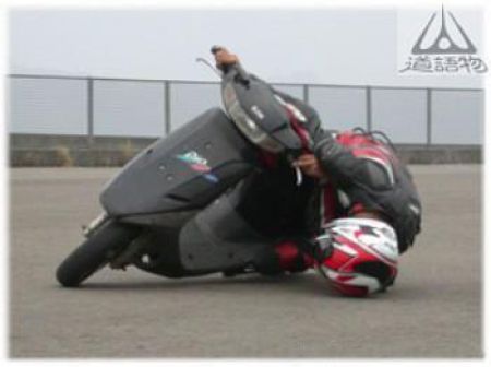 (2010/8/20)追記:コチラの画像は転倒ではなく「ヘルメット擦り」で、スクータなどミニバイク等の有名レーサたちがデモンストレーションでおこなったりするそうです。教えてくださった方ありがとうございます。