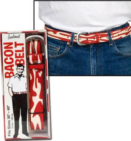 ベーコン好きな人にいつでも身近に感じられるように、というコンセプトのベーコンベルト。ベーコンと似た厚みなので脂身との模様がとてもおいしそう…な訳はありませんね。ベーコン好きでもちょっと嫌です。
