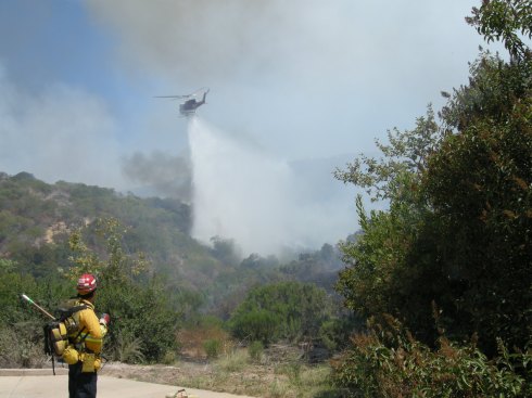 消火には150人もの消防士やヘリコプターまで駆けつけ、乾燥していたオレンジ・カウンティの2つの丘を炎が燃え広がって入った模様です。