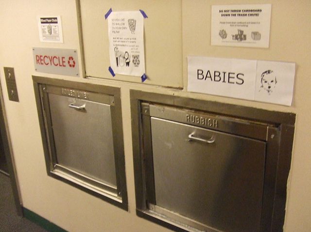 ダストボックスの表示が赤ちゃんポストに。まさか本当に捨てる学生はいませんよね。