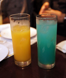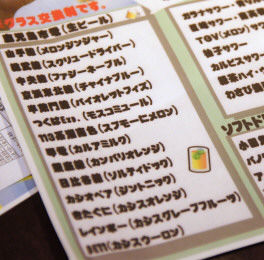 この日のドリンクメニュー。飲み物まで全部鉄道の名前…さすがです。写真は中央線(左)と、京浜東北線(右)。