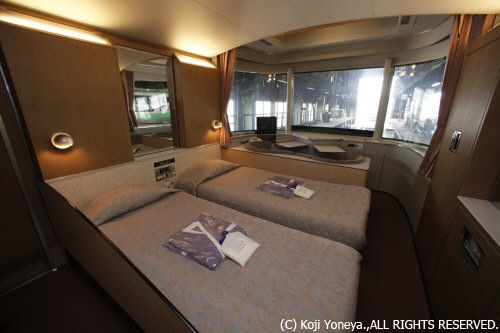 展望席のカシオペアスイートは超人気でとても予約が取れないため、車庫で撮影しなければならず、眠くて朦朧としながらも撮影を続けたのだそうです。