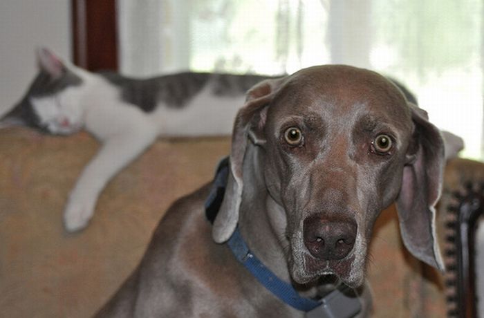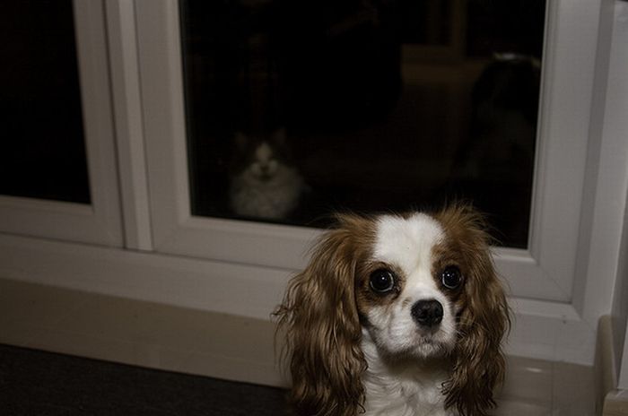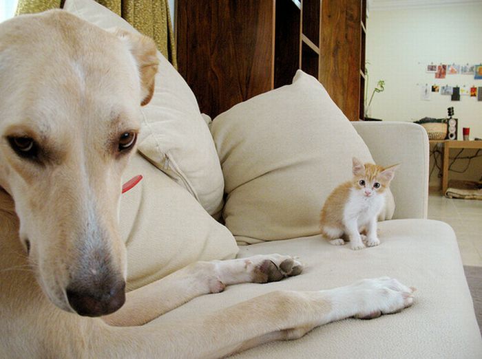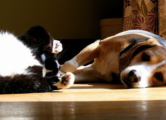 「わんわん、にゃー」お互いに邪魔しあう犬と猫の写真16枚