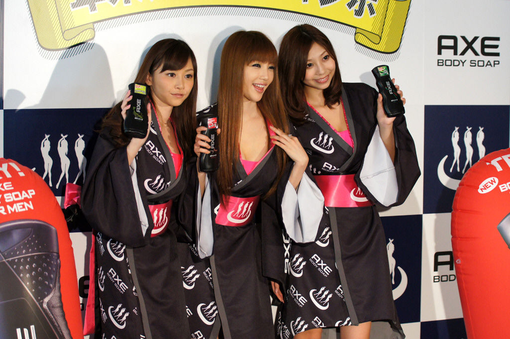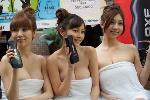 以前取材した「新宿駅前風呂場」のAXEボディーソープが、発売後2ヶ月で販売本数100万本を突破したことを記念して、なんとグラビアアイドル3人と混浴ができてしまうという、前代未聞のキャンペーン「