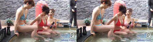 で、このイベントの後、実際に3人の入浴のフォトセッションが行われたのですが、会場が前代未聞の露天風呂!