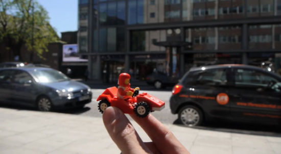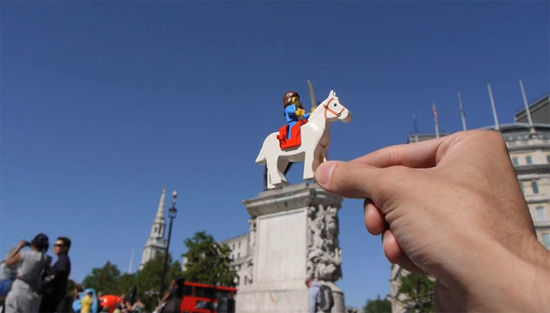 レゴのおもちゃをかざすだけで、ありふれた街中がイマジネーションあふれる景色に変貌した写真をご覧ください。