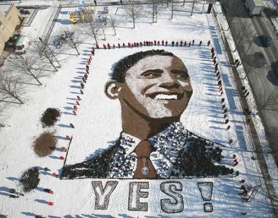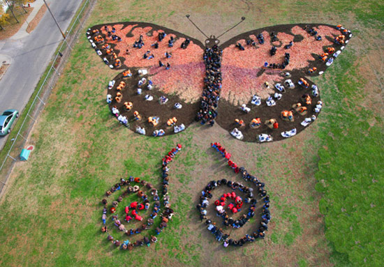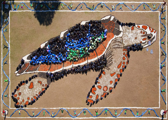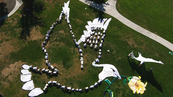 たくさん人と染料を使って巨大な絵を描き、空から撮影する“Art of the Sky”というプロジェクトがあります。