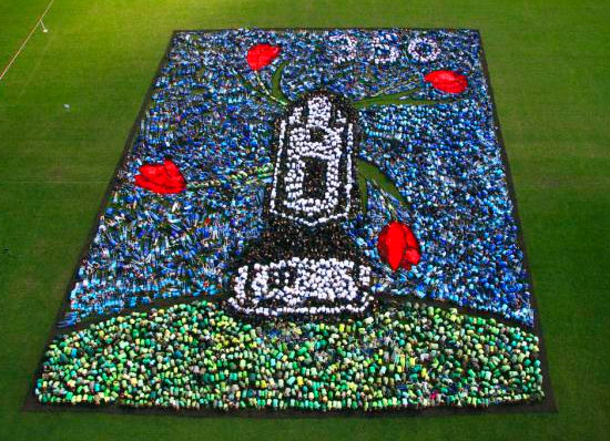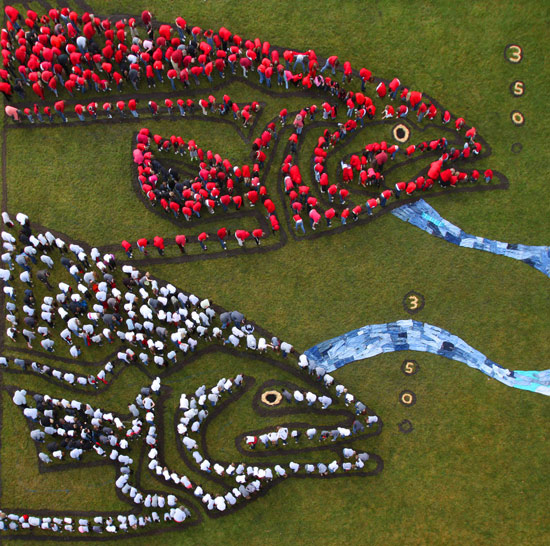 気球の上から撮影した地上絵…数千人が集まって描くアートの写真15枚