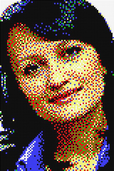 こちらが完成したもの。解像度は荒いですが、むしろモザイク画のような味があります。