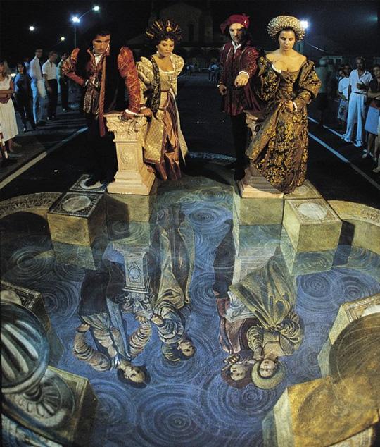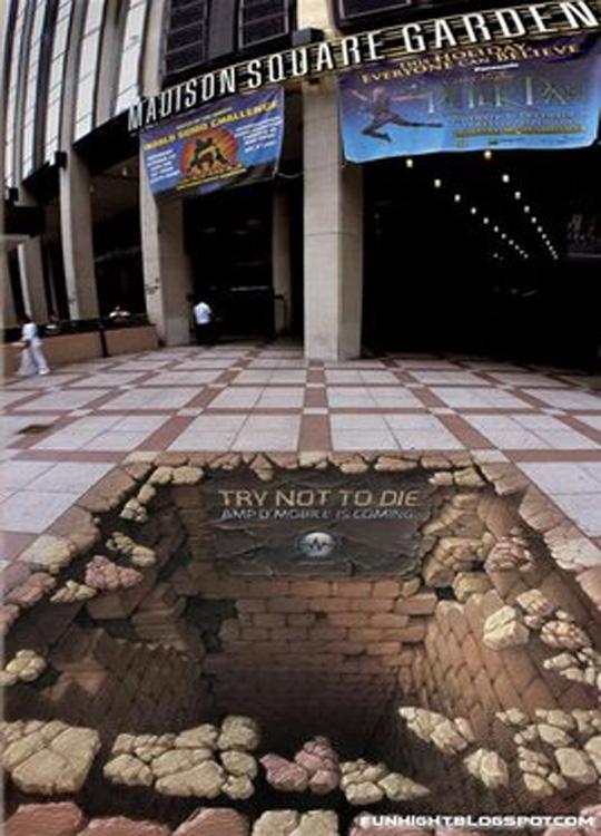 以前、立体的な路上絵の製作過程と言うものをご紹介したことがありますが、目の錯覚を利用した作品はいくら見ても飽きないものです。