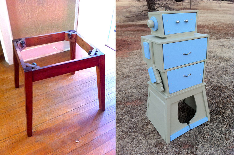 ゴミだったテーブルから切ったり張ったり塗り替えたりして作られた、そのすばらしい出来栄えをご覧ください。