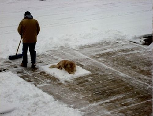 こちらの男性も雪かきに精を出しているところなのですが、ある一角だけどうしても雪かきできないでいるようです。