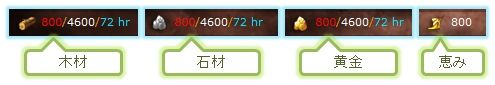 (※一部の施設では恵みという資源も必要だが、これは時間経過とクエストで増加)