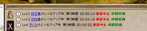 このゲームでは、施設を作ったり、施設のレベルを上げるのに、木材・石材・黄金の、3種類の資源が必要。そこでまず最初に伐採場や採石場など、資源生産力を上げる設備を育てましょう。