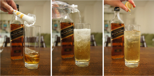 ウイスキーにあまり慣れてないなら、オススメの飲み方はやっぱりハイボール。ジョニーウォーカーを、人差し指1本分の幅くらいの高さまで注ぎ、氷、炭酸を入れ、レモンを搾って混ぜればできあがり。とても簡単で美味しいですよ。