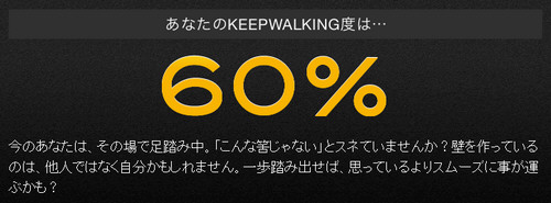診断してみると、人生の前向き度を示すKEEP WALKING度は…60%。