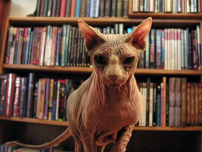 アメリカ・サンフランシスコにあるSF専門店。毛の無い品種の猫、スフィンクスがSFの雰囲気を演出しています。