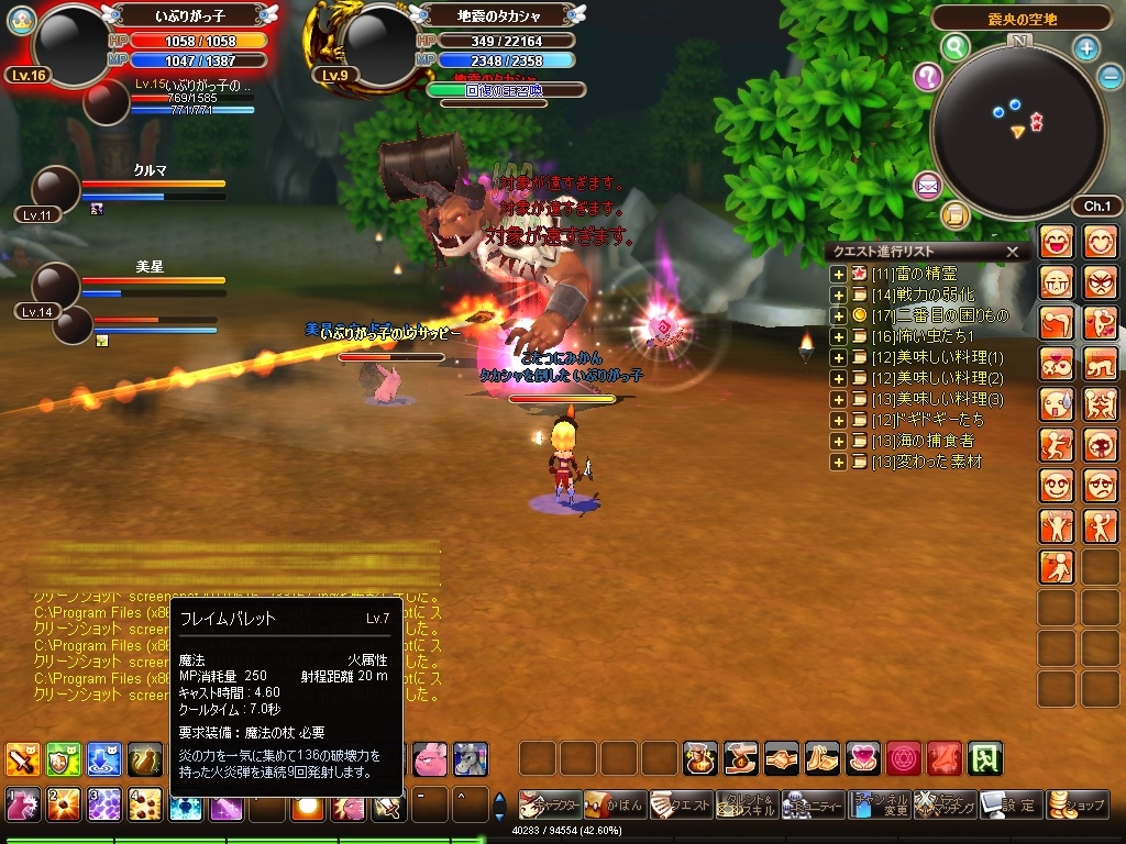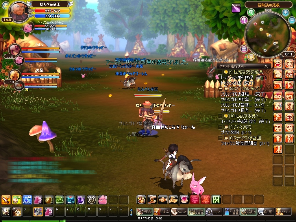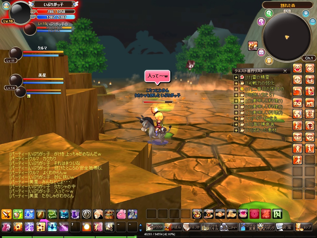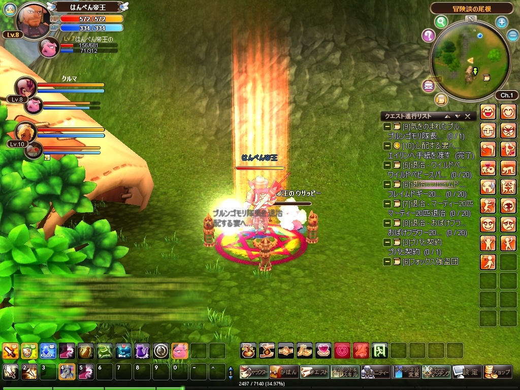 やっぱ3人とプパ3匹で束になって進めると、手強い敵も数の暴力であっというまに倒せていい感じ!やっぱネットゲームはパーティー組むと楽しい!