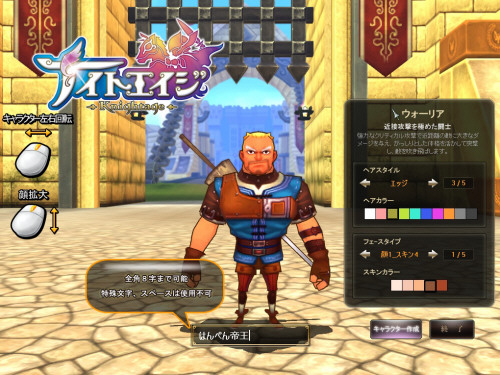 はWindows用のオンラインRPG。選べる職業は、ナイト、マジシャン、アーチャー、ウォーリアの4種類で、友人2人はナイトとマジシャンを選んだので、私はウォーリアを選択。