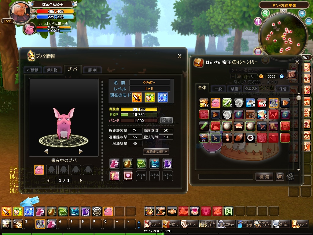 プパも経験値を積むとレベルアップ。プパは戦闘で経験値を積むほかに、いらない装備を食べさせても経験が上がるようです。もてあますくらい装備品をドロップするなと思ったら、そういう使い道なんですねー。