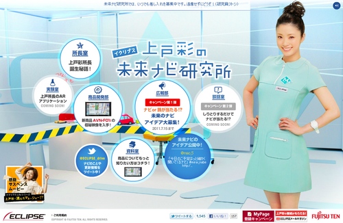未来のナビはiPhoneアプリと連携する!富士通テンのスペシャルサイト「上戸彩のイクリプス未来ナビ研究所」がオープン!