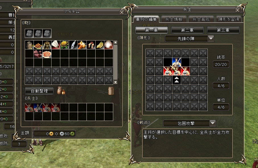 戦闘の前に、チュートリアルでもらった男義勇兵を陣形に配置してみました。