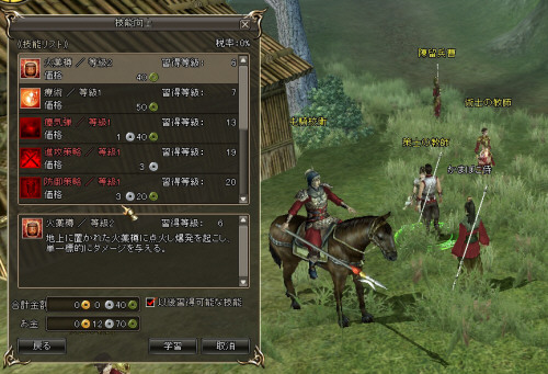 武将技は、レベルが上がると教師からよりレベルの高い技や、新しい技を学ぶことができます。レベルがだいぶ上がった頃に来ると、新しいスキルがどばっと習得できて、成長感が楽しいかも。