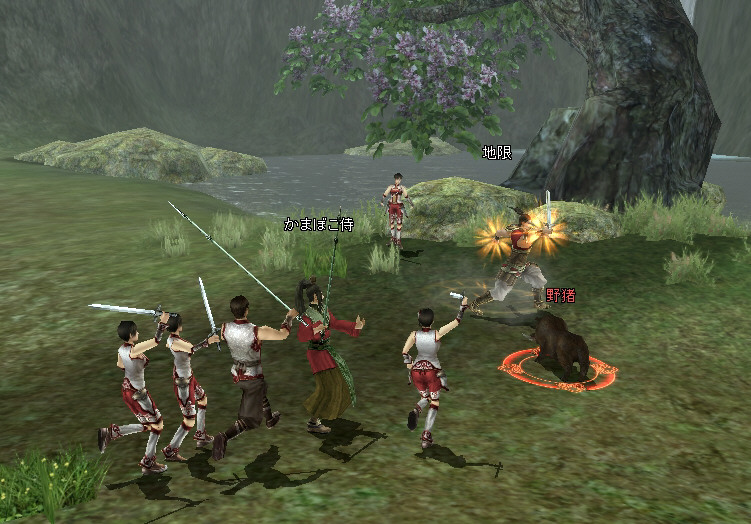 一匹の敵に5人で群がって、ボコボコのタコ殴りに…。