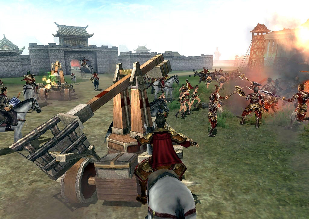 攻城戦では肉弾戦の他にも、攻城兵器を駆使した激しい戦いも。