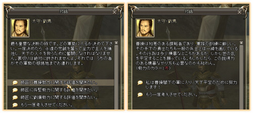 の3つの勢力の選択を迫られました。どの勢力を選ぶかで、「国戦」で有利になるなど様々な展開があり、ゲームの進行が変わります。また服装の色も勢力によって変わるようです。