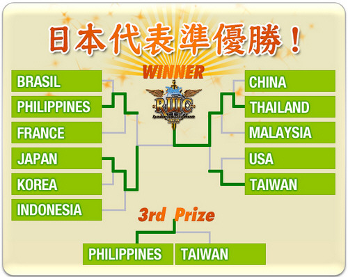 昨年開かれたRWC2010では、惜しくも日本チームは決勝でタイに敗れ、準優勝という結果に。意外にも優勝はタイ。またフィリピン、台湾が3,4位につけているなど、予想外にも本場韓国が圧倒される結果に。