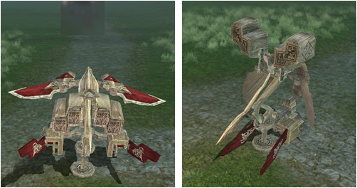 神鳶車は、移動形態と射撃形態の2形態を持つ、変形タイプの兵器。