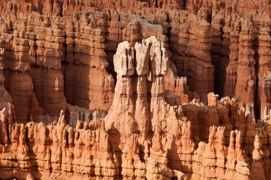 ブライスキャニオンは「土柱」と呼ばれる独特の地質構造で、風、水、氷による川床と湖床の堆積岩の浸食により形成されているそうです。(ブライスキャニオン国立公園 - Wikipedia)
