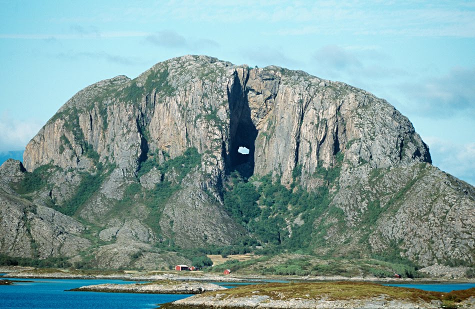 ぽっかりと穴が開いていることで知られる岩山。