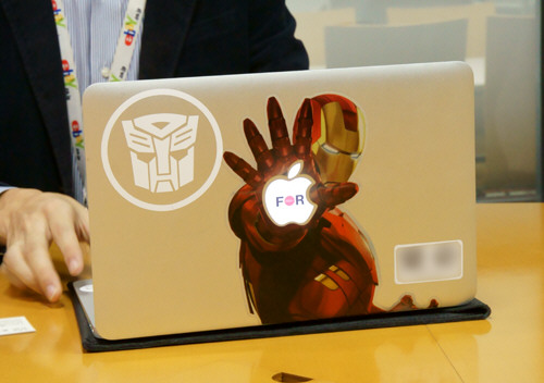 ーーまるで書類袋みたいでいいですね。ステッカーはアイアンマンですか!手のひらが光るようになってるんですね…カッコイイ!