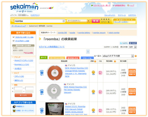 そこで試しに、アメリカで日本の半額以下で売られているルンバ(Roomba)を、セカイモンで落札してみました。