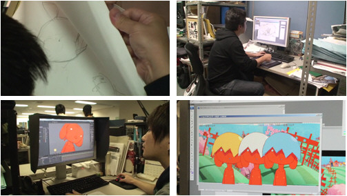 手書きを元に、デジタルで着色・エフェクトが施されていく作品。今時のアニメーション製作って、こんな風になっているんですね。