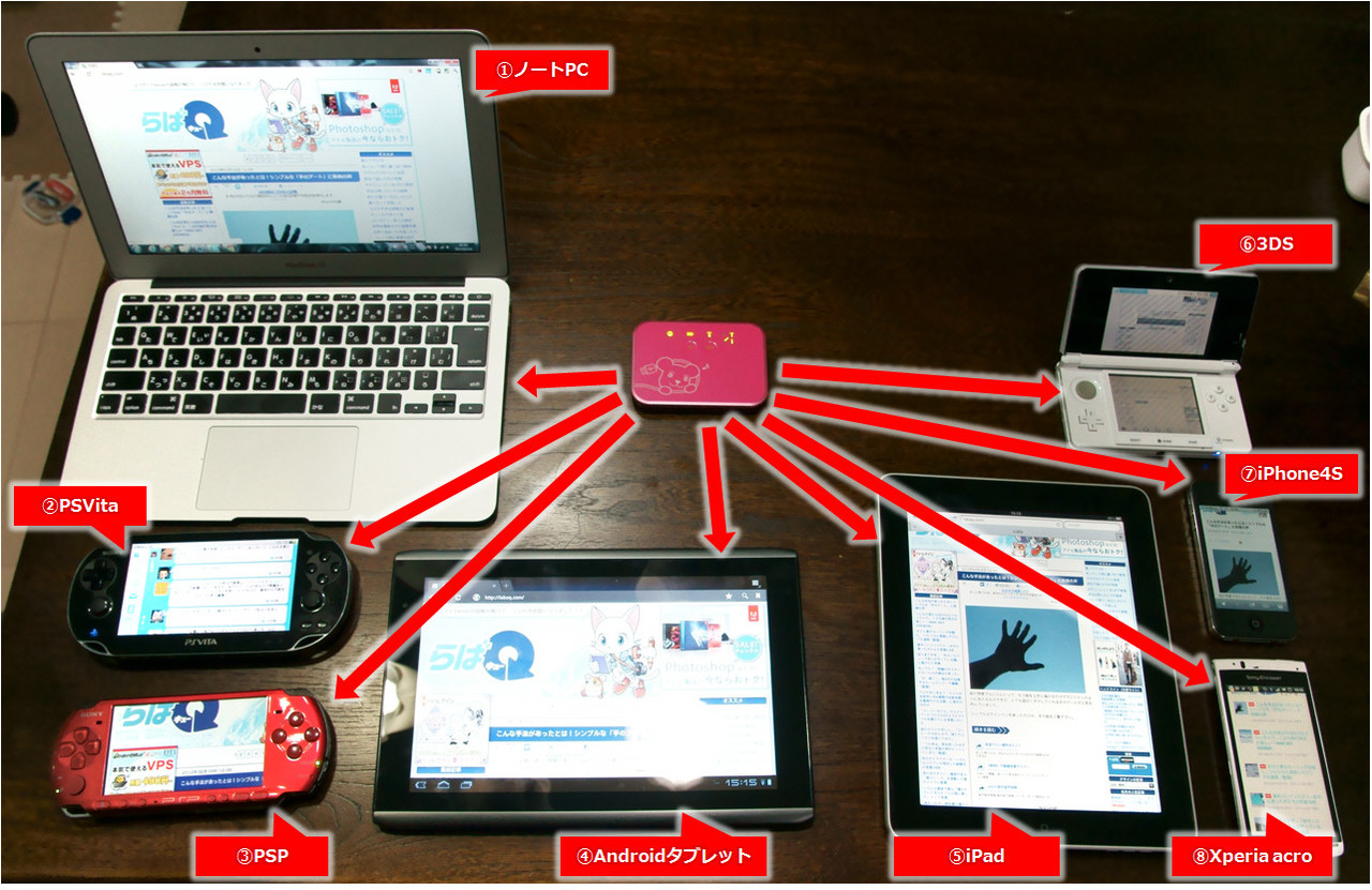 この機器は超簡単に言うと、家や外でインターネットに接続できるようになる装置。Wi-Fi対応のiPadやiPodTouch、PSVita、3DS、パソコン、スマートフォン、ゲーム機などあらゆる機器でインターネットが使えるようになる、モバイルルーターという機器です。