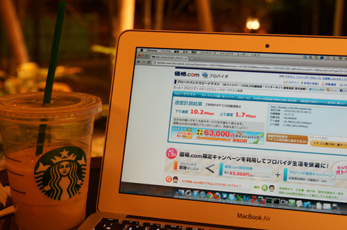 試しにお気に入りのスターバックスに持ち出してみました。ラテを飲みながら、のんびりネットを巡回してくつろぎのひととき…。インターネット接続はサクサクで、動画も快適に視聴できます。