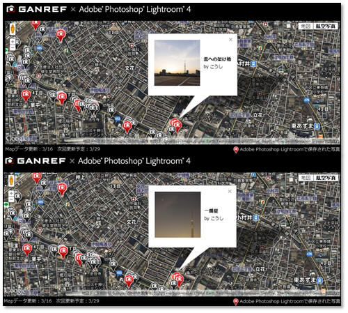 投稿された写真はサイト上のGoogleMapに掲載され、どこでどんな写真が撮れたかが撮れたか一目でわかるように。すでに数多くの写真が投稿されているようです。